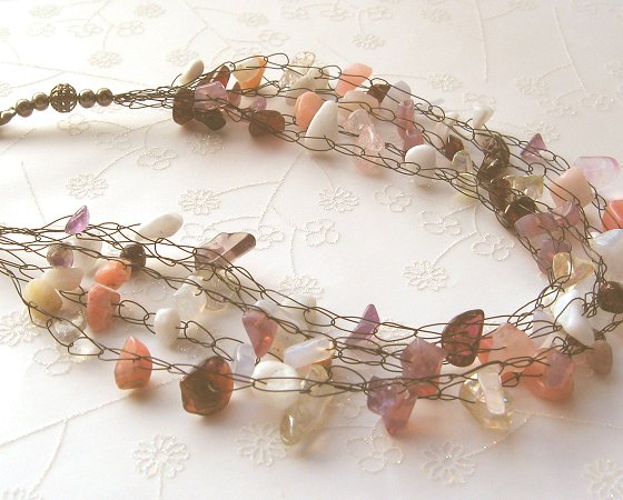 Wire crochet necklace with gemstones